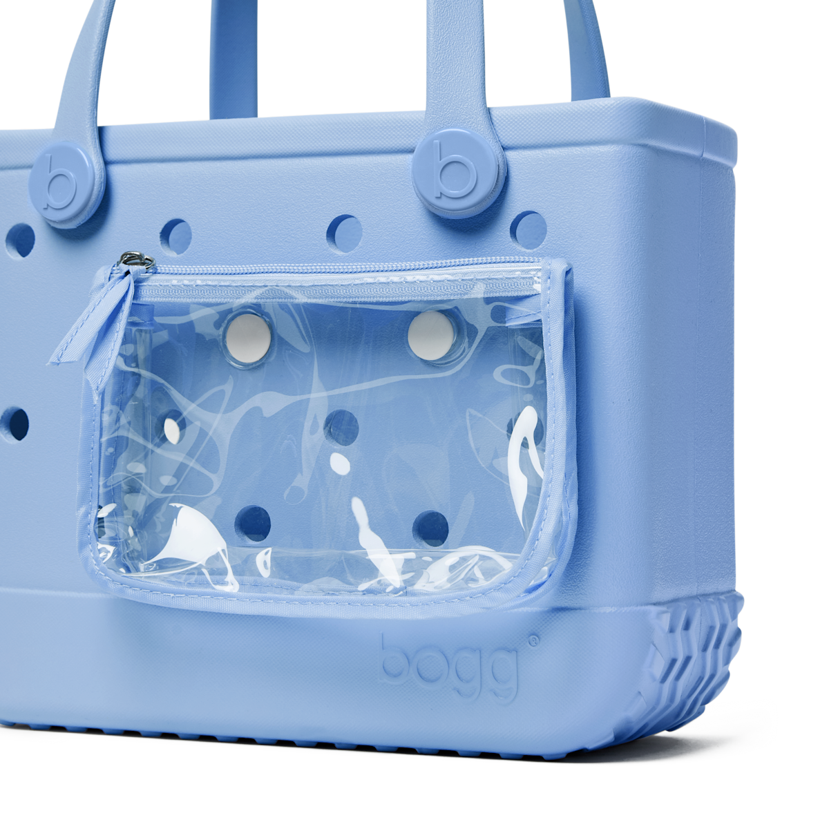 Includes a small clear pouch for storing little essentials like keys, lip balm, or hand sanitizer.