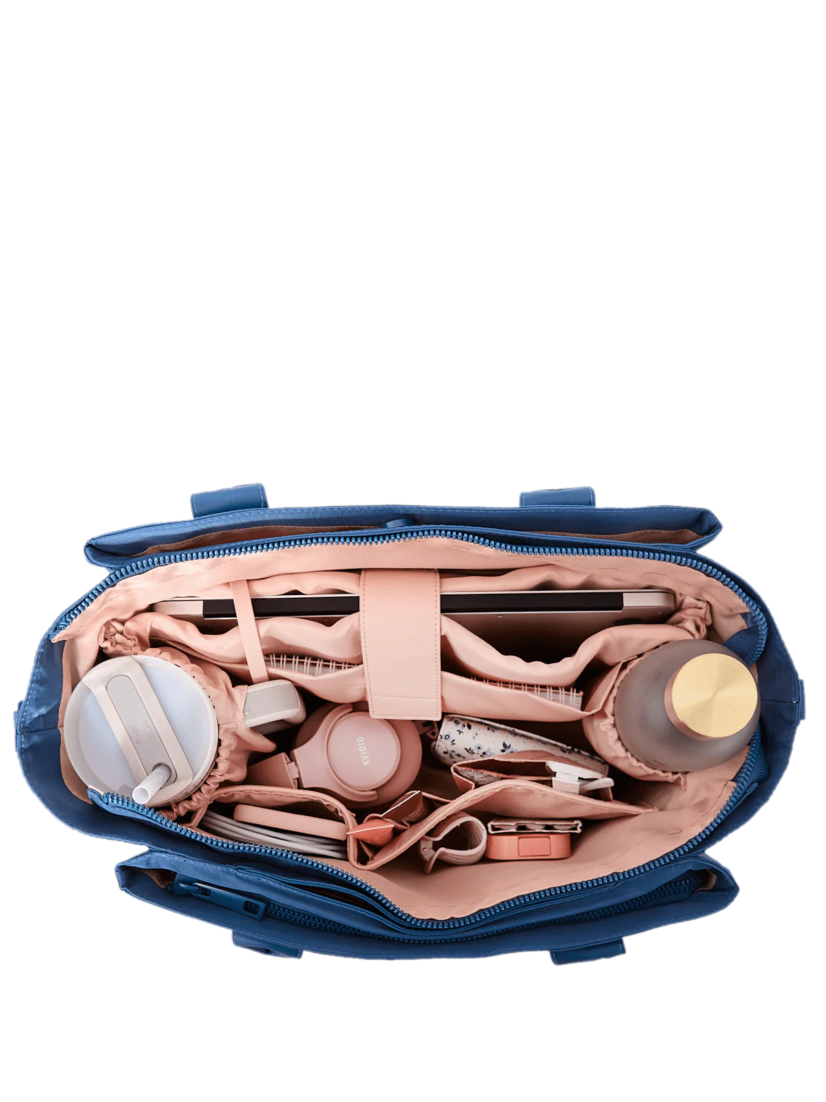 Designed for the daily grind. From work to workout to weekend away, this spacious every day tote is designed to carry all of your essentials. Features a smart, roomy interior with swagger pockets for ample storage and organization including two water bottle pockets and one designed just for your Stanley. Features designated pockets just for lipstick, phone, sunglasses and a key leash. Protect your laptop with the removable 16.5-inch padded laptop sleeve. The top zip closure will keep your belongings safe and secure and the convenient trolley sleeve makes it easy to attach to your luggage so you can navigate the airport with ease. Grab and go using the top handles or attach the adjustable crossbody strap for hands-free functionality.