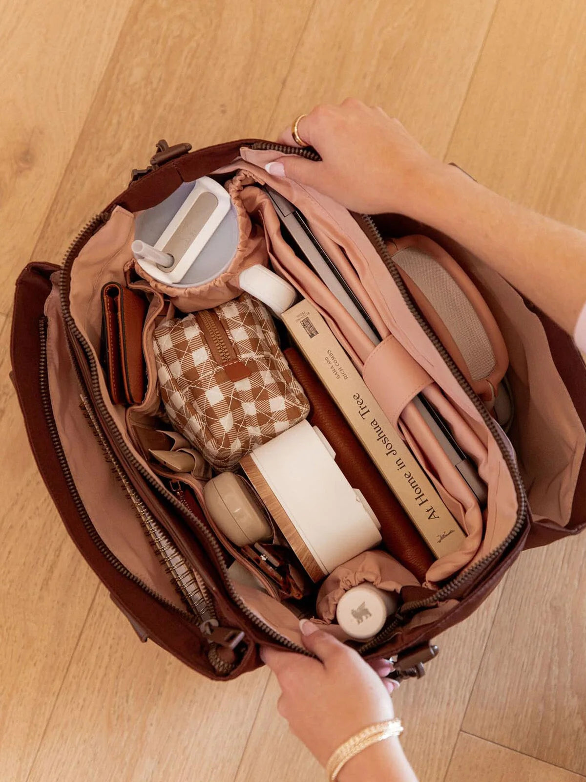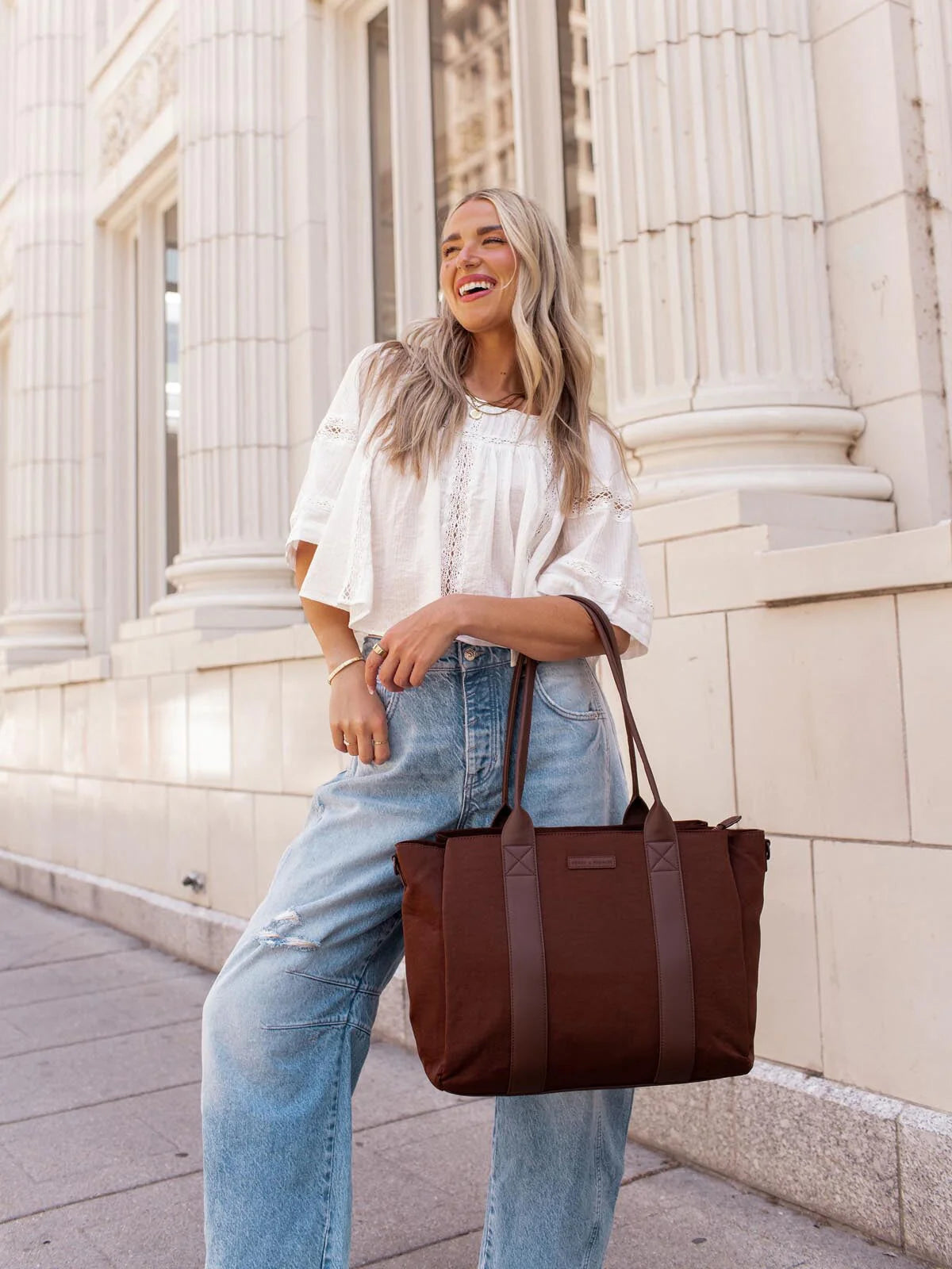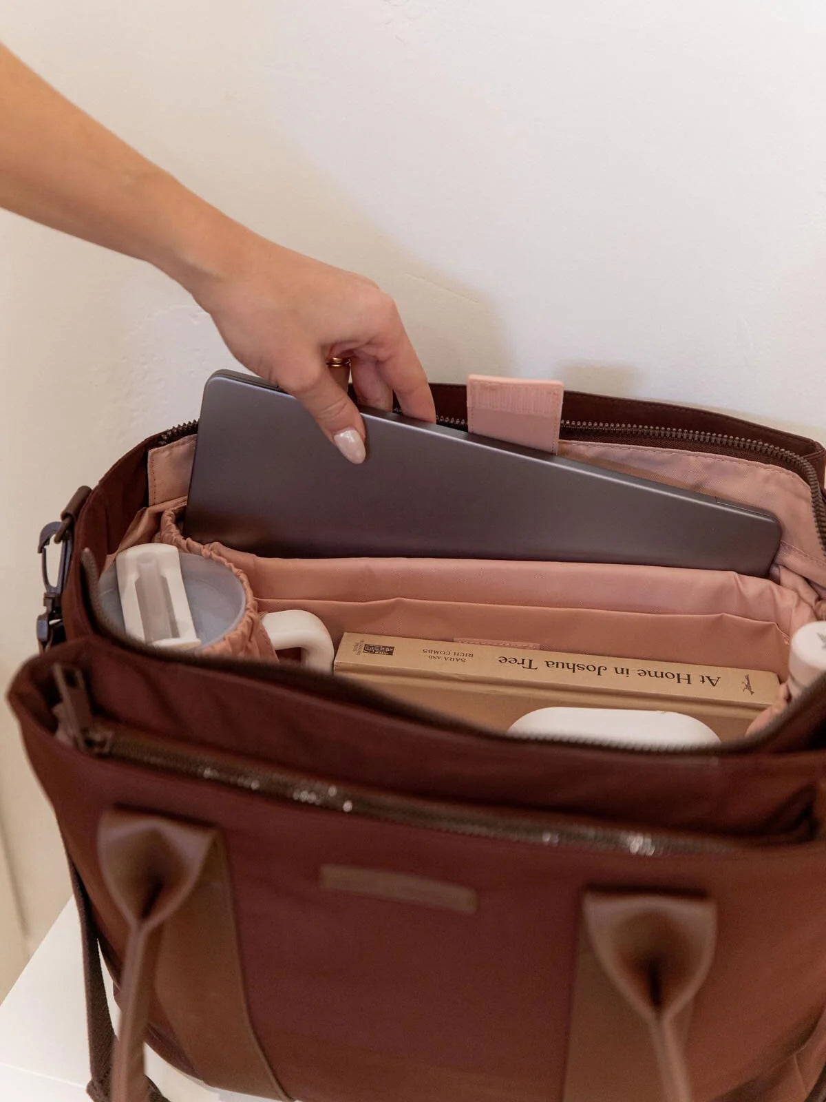 Designed for the daily grind. From work to workout to weekend away, this spacious every day tote is designed to carry all of your essentials. Features a smart, roomy interior with swagger pockets for ample storage and organization including two water bottle pockets and one designed just for your Stanley. Features designated pockets just for lipstick, phone, sunglasses and a key leash. Protect your laptop with the removable 16.5-inch padded laptop sleeve. The top zip closure will keep your belongings safe and secure and the convenient trolley sleeve makes it easy to attach to your luggage so you can navigate the airport with ease. Grab and go using the top handles or attach the adjustable crossbody strap for hands-free functionality.