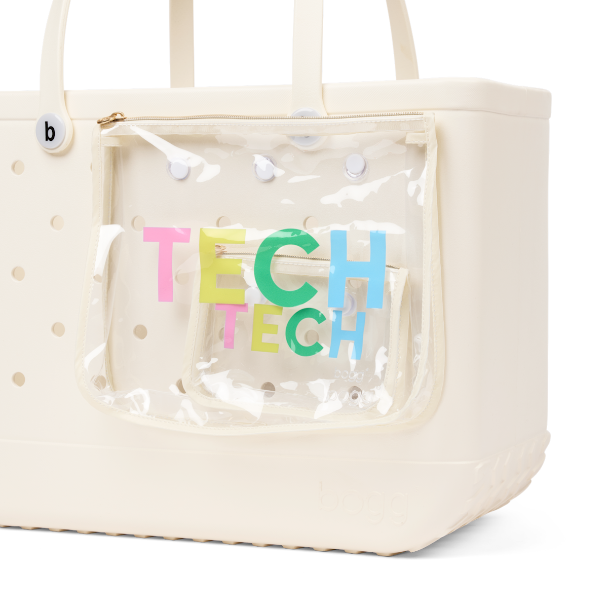 Keep your essentials sorted with this set of small and large zippered pouches. Clear, leak-resistant, and easy to clean, they snap right into the holes of your Bogg Bag to keep valuables secure and within reach—no more digging.