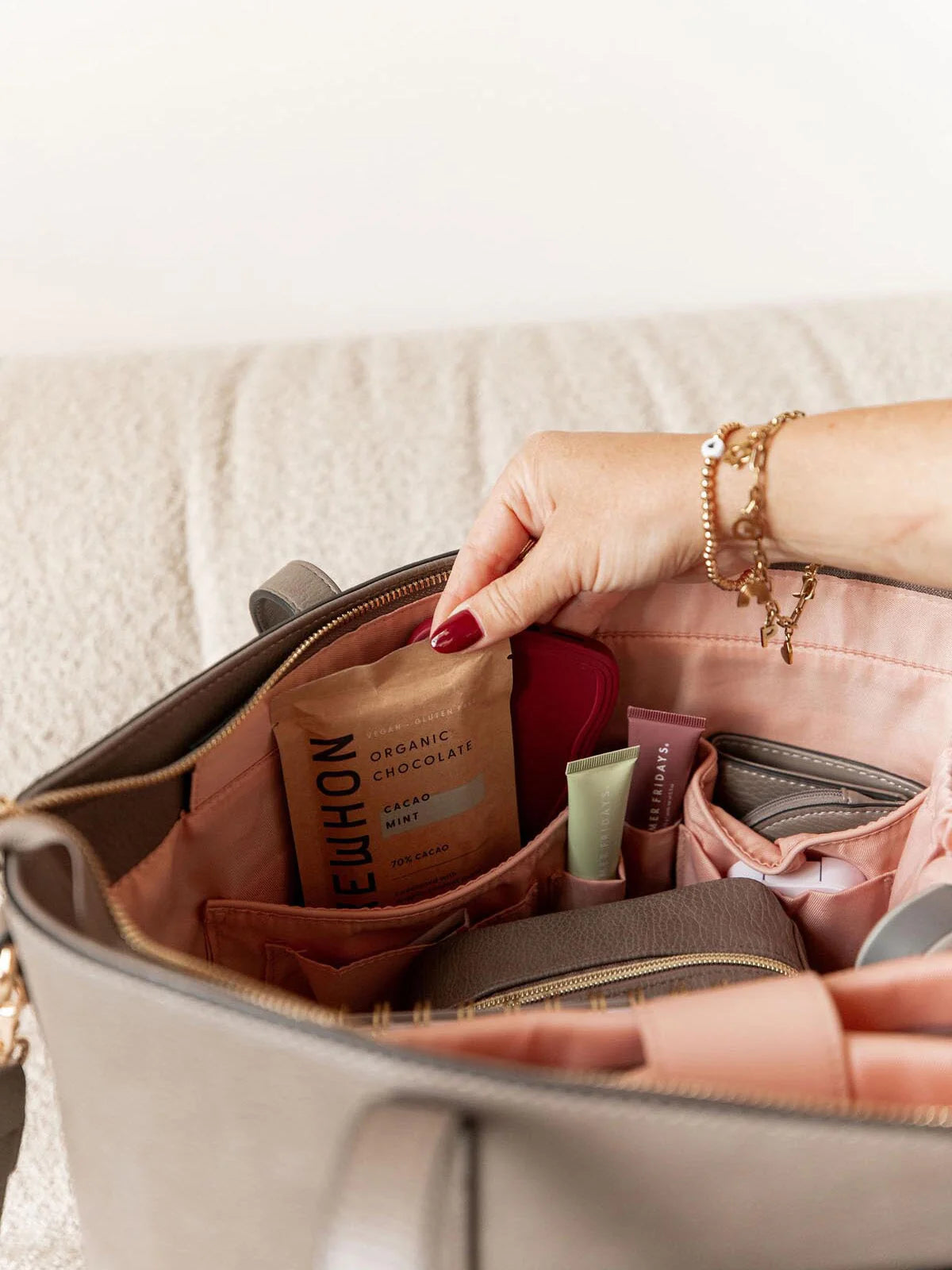 The Go-Getter was designed to carry all of life’s daily essentials with room to spare. Our spacious, all-in-one tote is sleek and sophisticated without compromising on function. Protect your laptop with a stylish, removable 16-inch padded laptop sleeve. Features an interior water bottle pocket, ample interior storage and organization including designated pockets just for lipstick.....yes! The top zip closure will keep your belongings safe and secure and the convenient trolley sleeve makes it easy attach to your luggage so you can navigate the airport with ease.