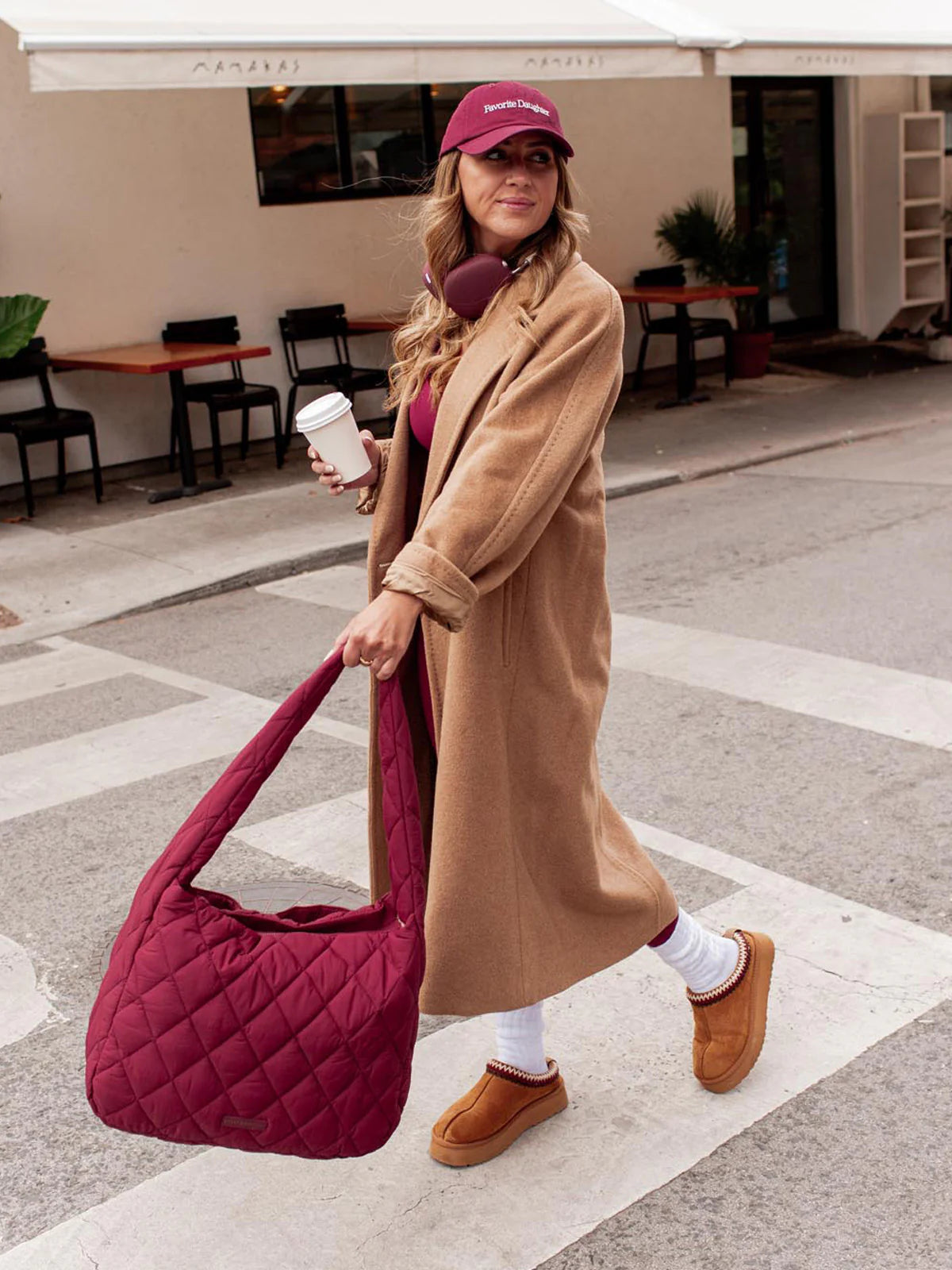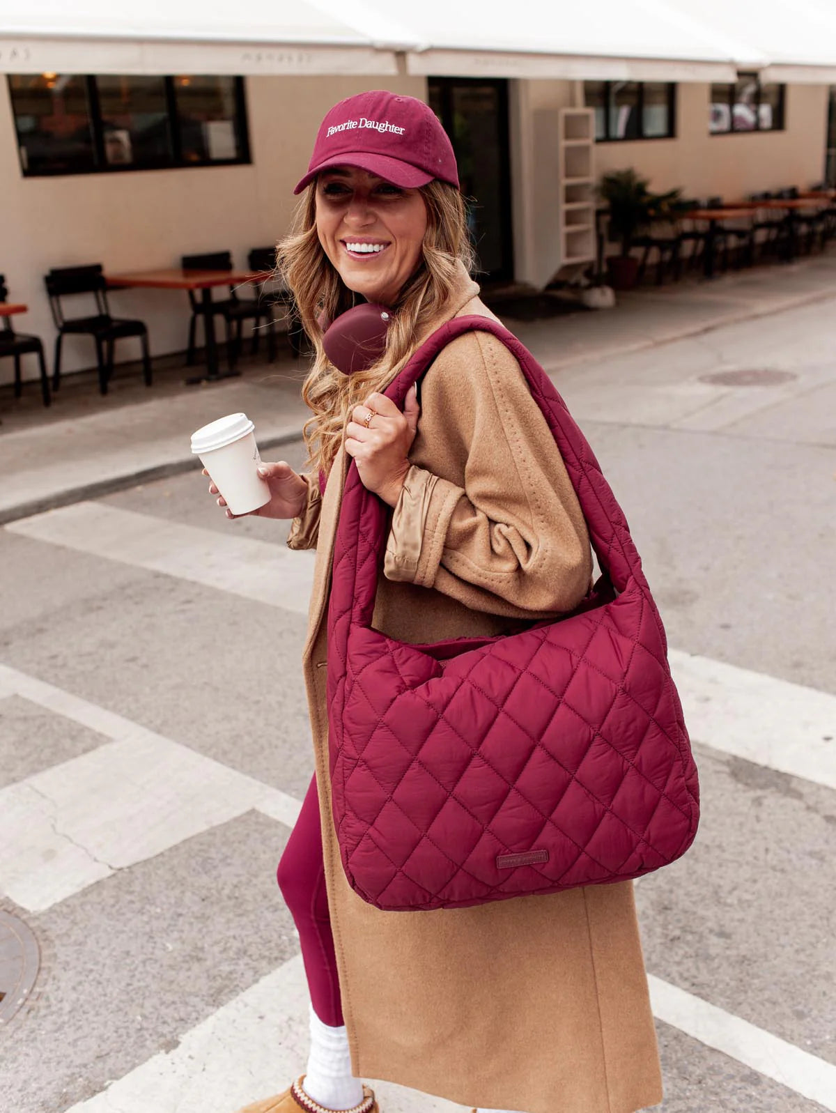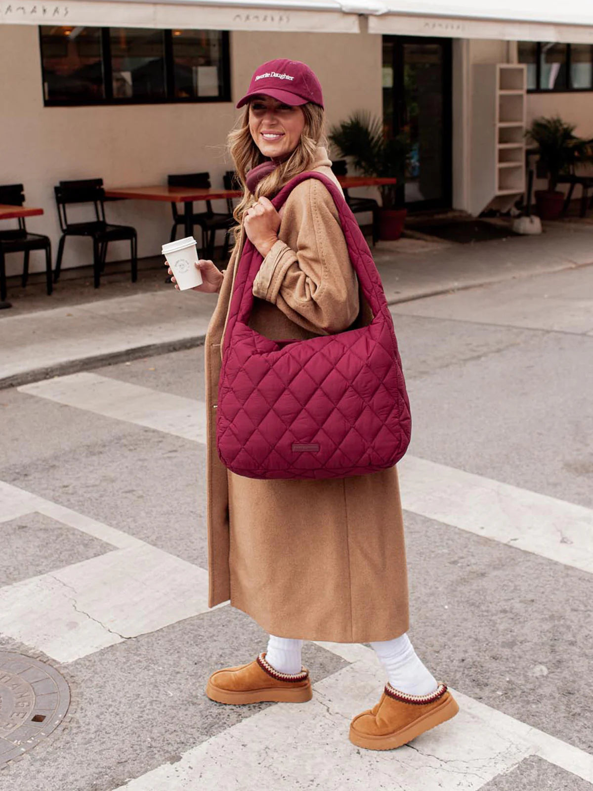 A quilted companion to take you from desk to dinner. Versatile, roomy, and reliable, the Haul It Hobo adapts to whatever the day brings your way. With its ample interior, including a designated pocket for your Stanley tumbler as well as an pocket for a standard water bottle, removable laptop sleeve and interior compartments, the Haul It ensures you'll have room for everything you need. A top zipper closure keeps your necessities where you want them and the back slide pocket gives you easy access to your phone. Crafted in a quilted washed nylon with tonal hardware.