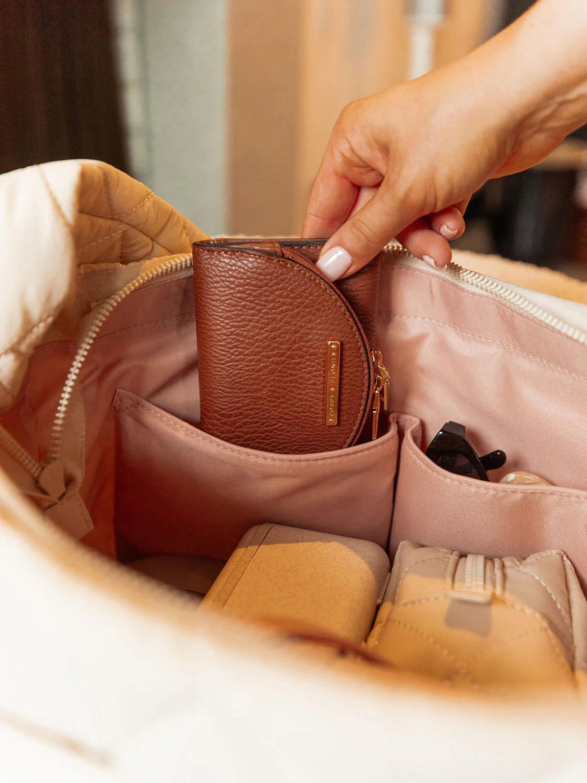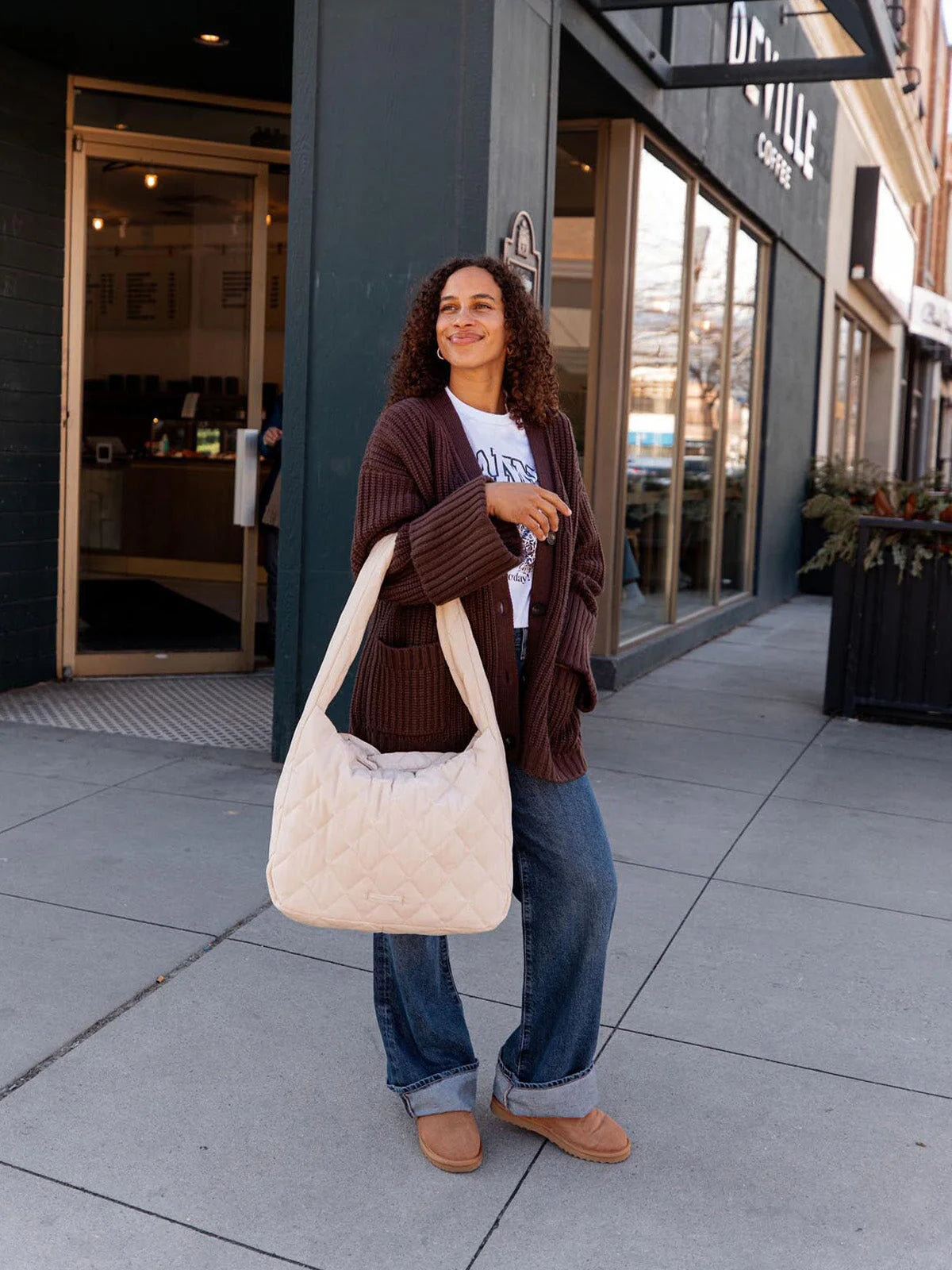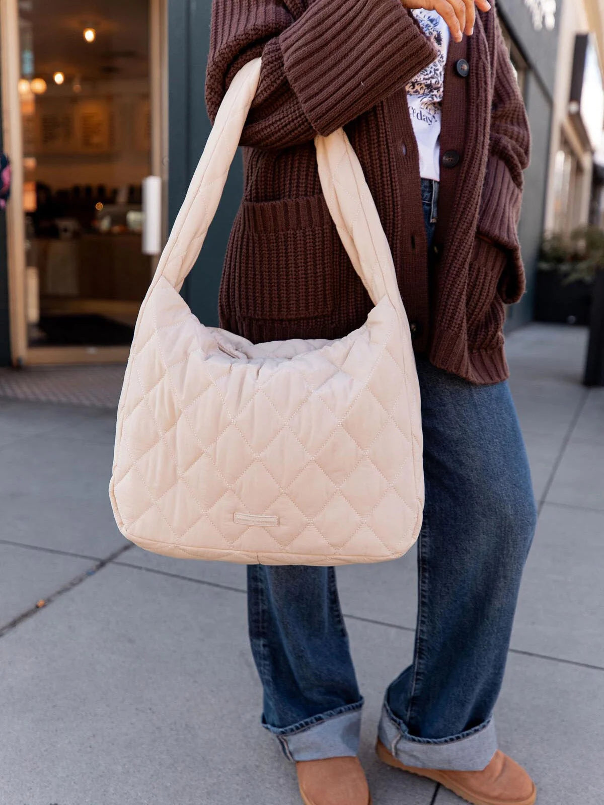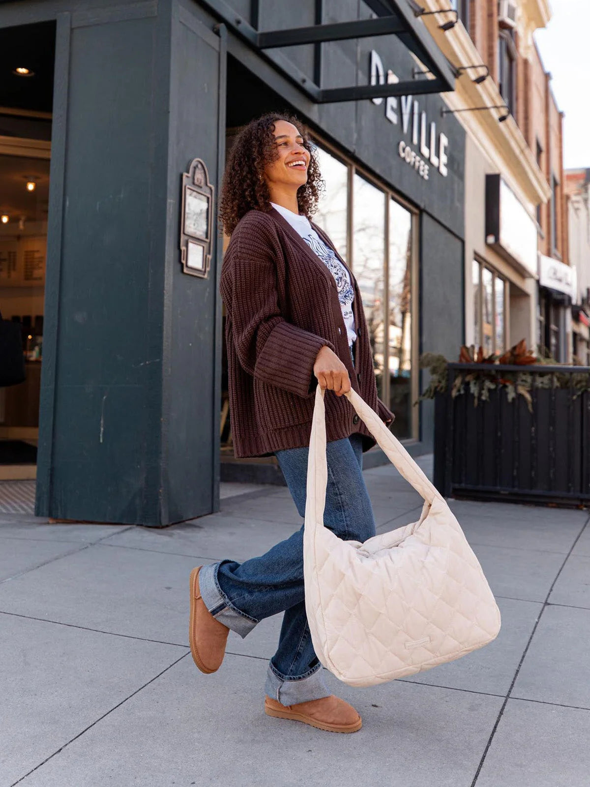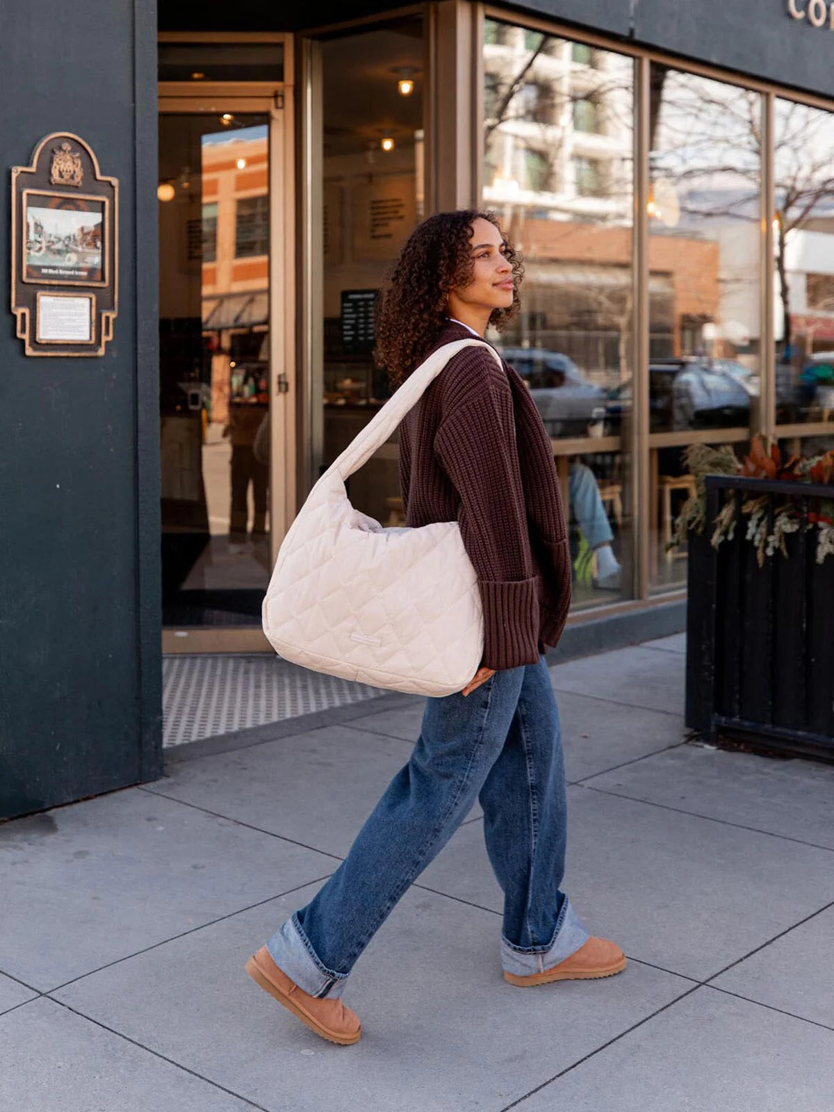 A quilted companion to take you from desk to dinner. Versatile, roomy, and reliable, the Haul It Hobo adapts to whatever the day brings your way. With its ample interior, including a designated pocket for your Stanley tumbler as well as an pocket for a standard water bottle, removable laptop sleeve and interior compartments, the Haul It ensures you'll have room for everything you need. A top zipper closure keeps your necessities where you want them and the back slide pocket gives you easy access to your phone. Crafted in a quilted washed nylon with tonal hardware.
