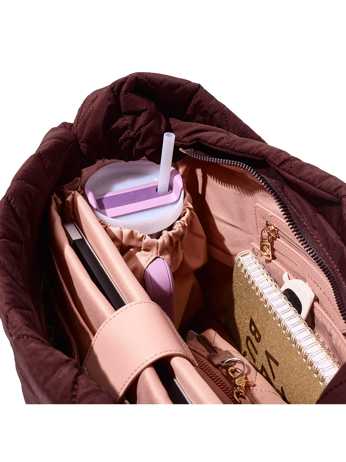 A quilted companion to take you from desk to dinner. Versatile, roomy, and reliable, the Haul It Hobo adapts to whatever the day brings your way. With its ample interior, including a designated pocket for your Stanley tumbler, removable laptop sleeve and interior compartments, the Haul It ensures you'll have room for everything you need. A top zipper closure keeps your necessities where you want them and the back slide pocket gives you easy access to your phone. Crafted in a quilted washed nylon with tonal hardware.