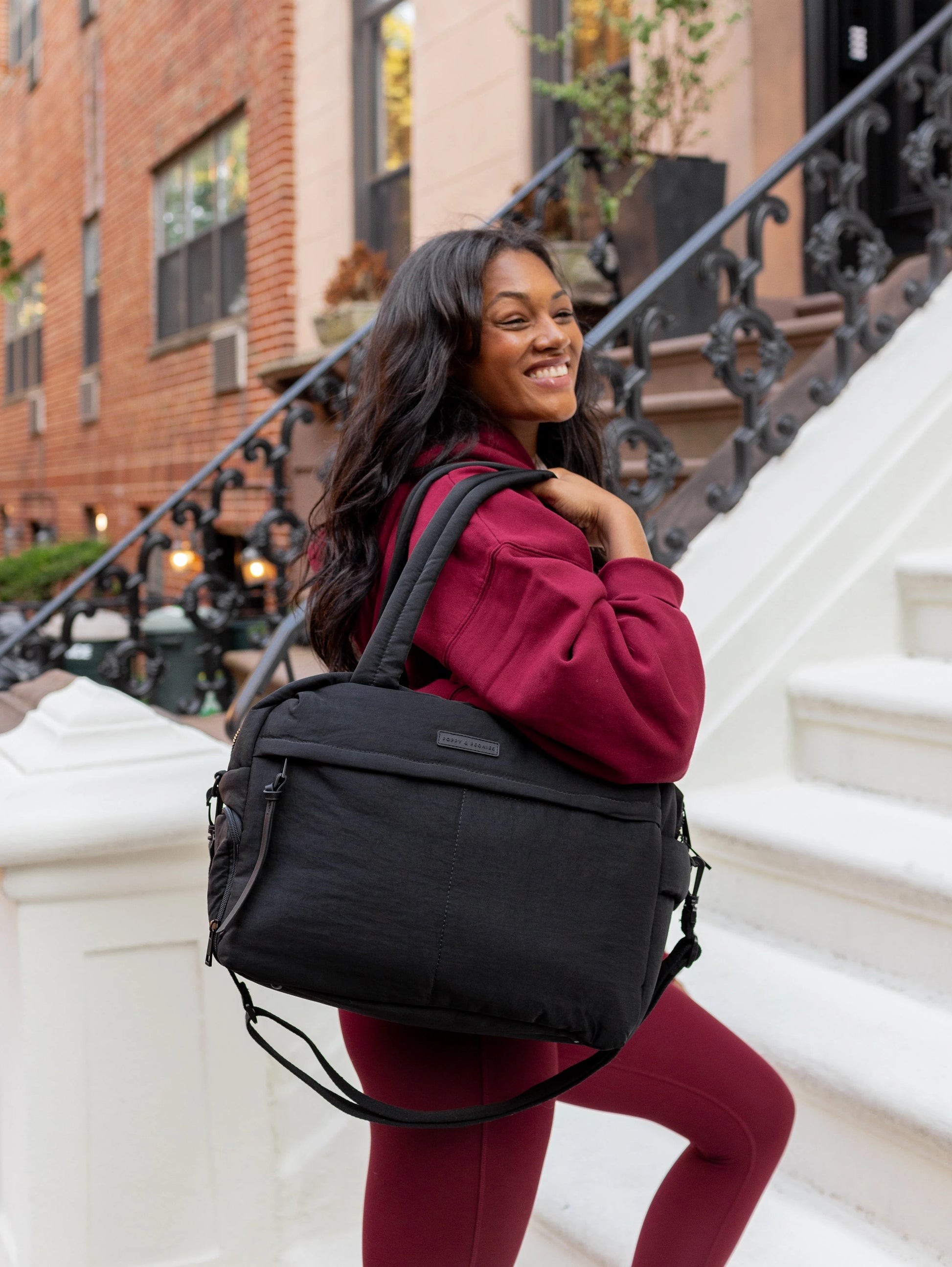 Crafted from lightweight, water-resistant nylon, this bag is built for days that don’t slow down.