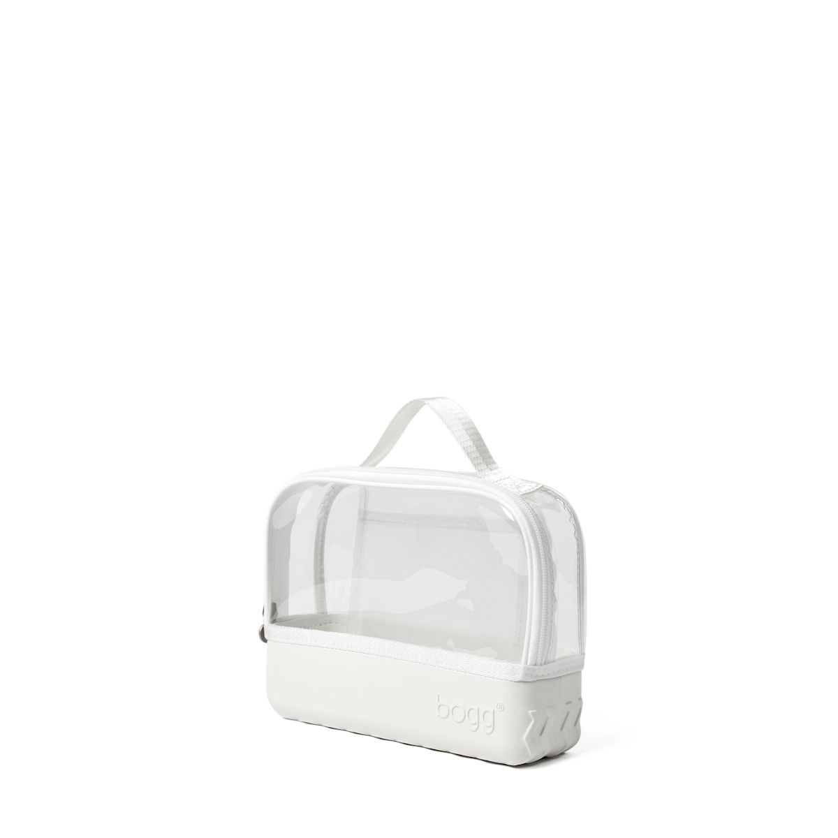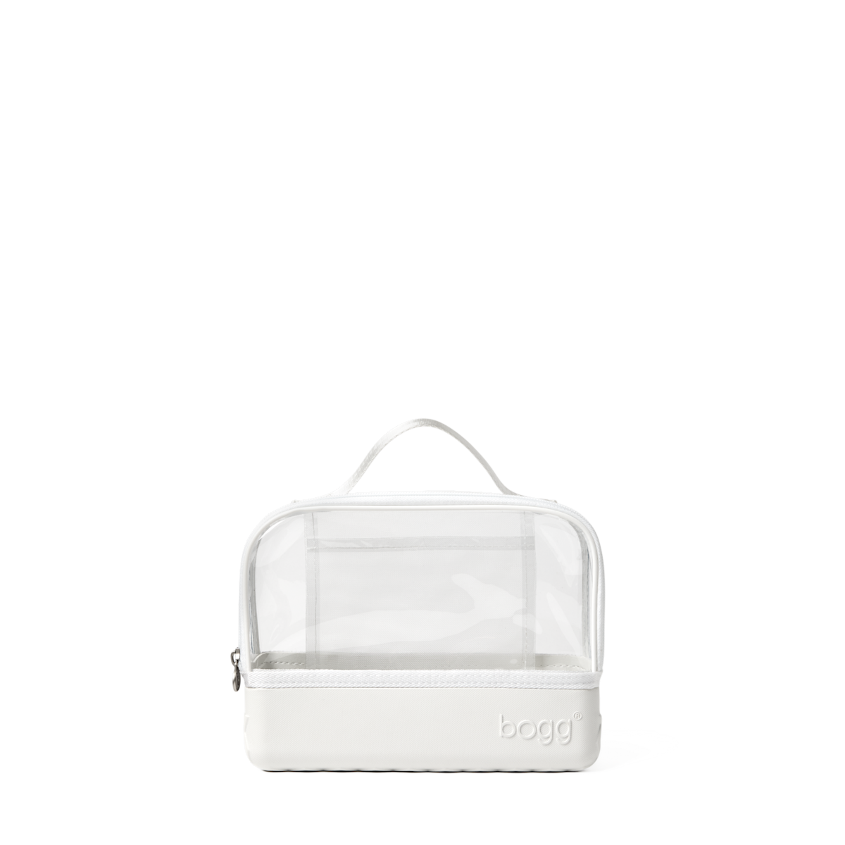 Compatible with all three Bogg Bag sizes, it features our signature tread base for tip-proof stability on vanities, counters, and shelves. A transparent topper, interior slip pocket, and wide U-shaped zipper make it easy to see and grab what you need. Finished with a sturdy top handle for grab-and-go convenience.