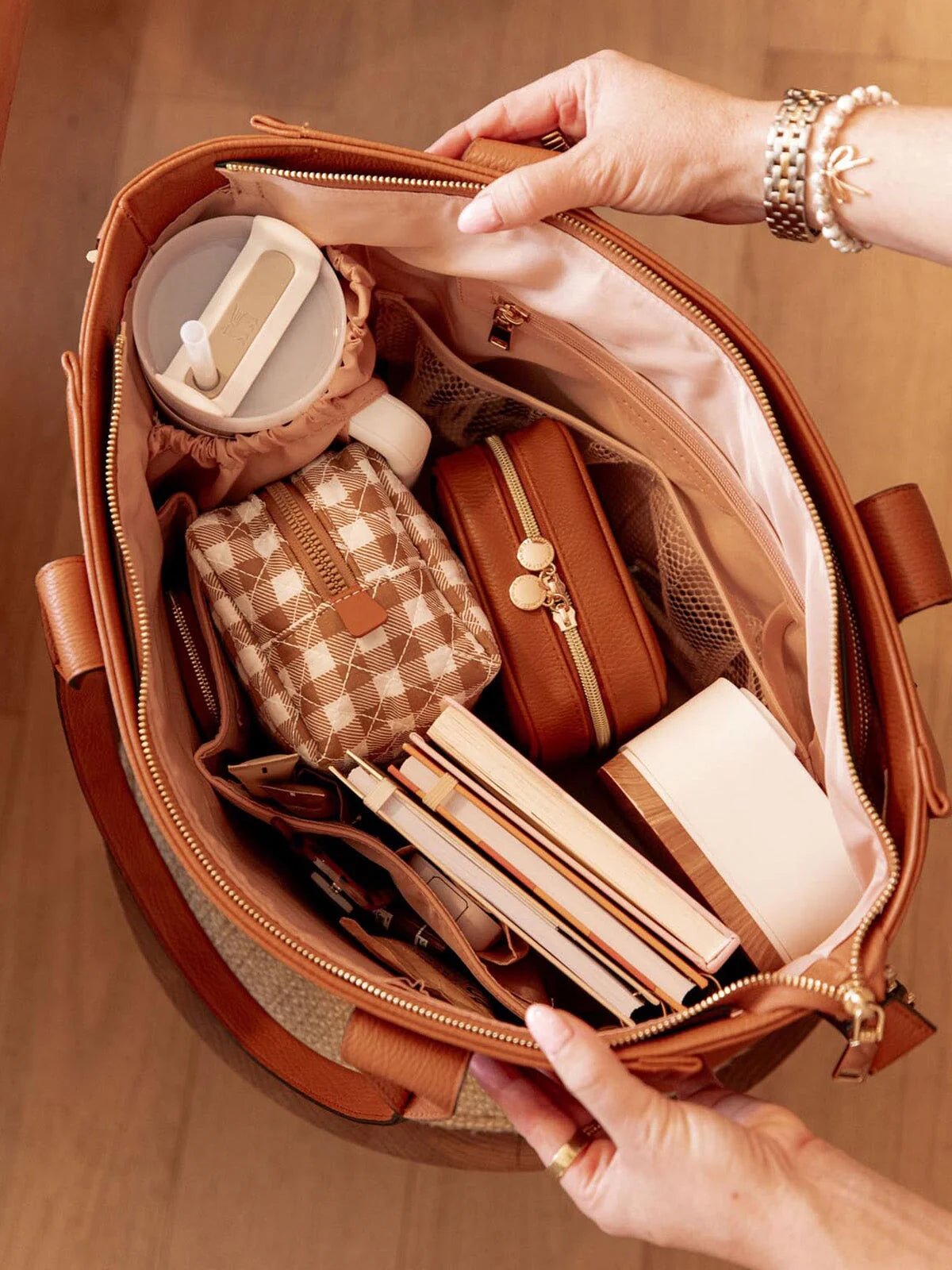 Think of it as your office on the go and travel companion in one. With a roomy interior that fits all of life’s essentials and a convenient trolley sleeve for breezing through the airport, the Multitasker is the perfect blend of style and function. Protect your laptop with a 16" padded compartment, and keep everything secure with a top zip closure. Inside, you’ll find two interior water bottle pockets (yes it fits a 40 oz Stanley, plenty of storage, and dedicated spots for your phone, lipstick and everything else you need to tackle the day.