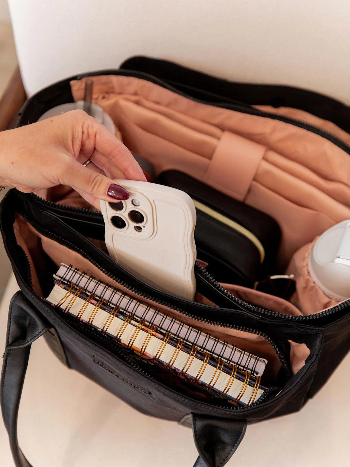 - Interior zipper pocket and key leash, two lipstick pockets, three additional pockets and cell phone pocket.
